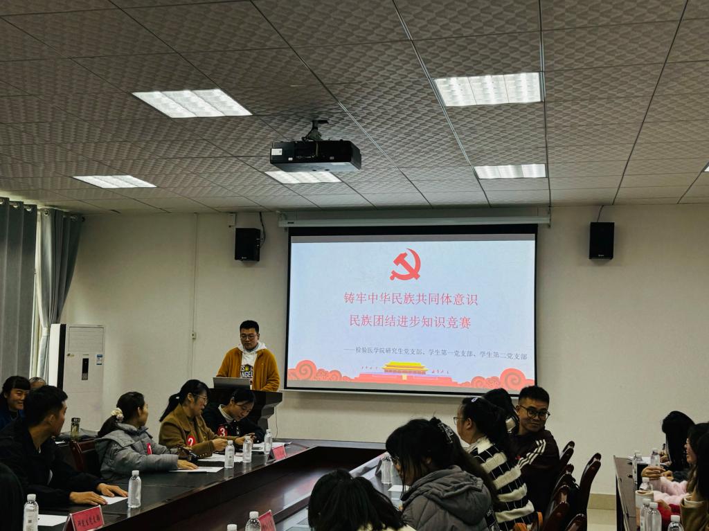 为深入学习宣传贯彻党的二十大精神,扎实开展“感党恩、听党话、跟党走”宣传教育活动,进一步铸牢中华民族共同体意识,2023年12月8日由检验医公司党委联合机关第十七党支部举办,tyc33455cc太阳成集团研究生党支部承办的“铸牢中华民族共同体意识”主题教育活动在tyc33455cc太阳成集团五楼会议室如期开展。机关第十七党支部、tyc33455cc太阳成集团研究生党支部、tyc33455cc太阳成集团员工第一党支部、第二党支部支部书记、全体党员、发展对象、入党积极分子以及青马工程学员60余人参加。
